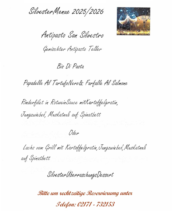 Zu dem bieten wir auch für besondere Anlässe wie Weihnachtsfeiern, Hochzeiten, Geburtstage u.s.w unsere Trattoria bis zu 50 Personen an. Auf Wunsch sorgen wir auch für das Essen ihrer Persönlichen Feiern